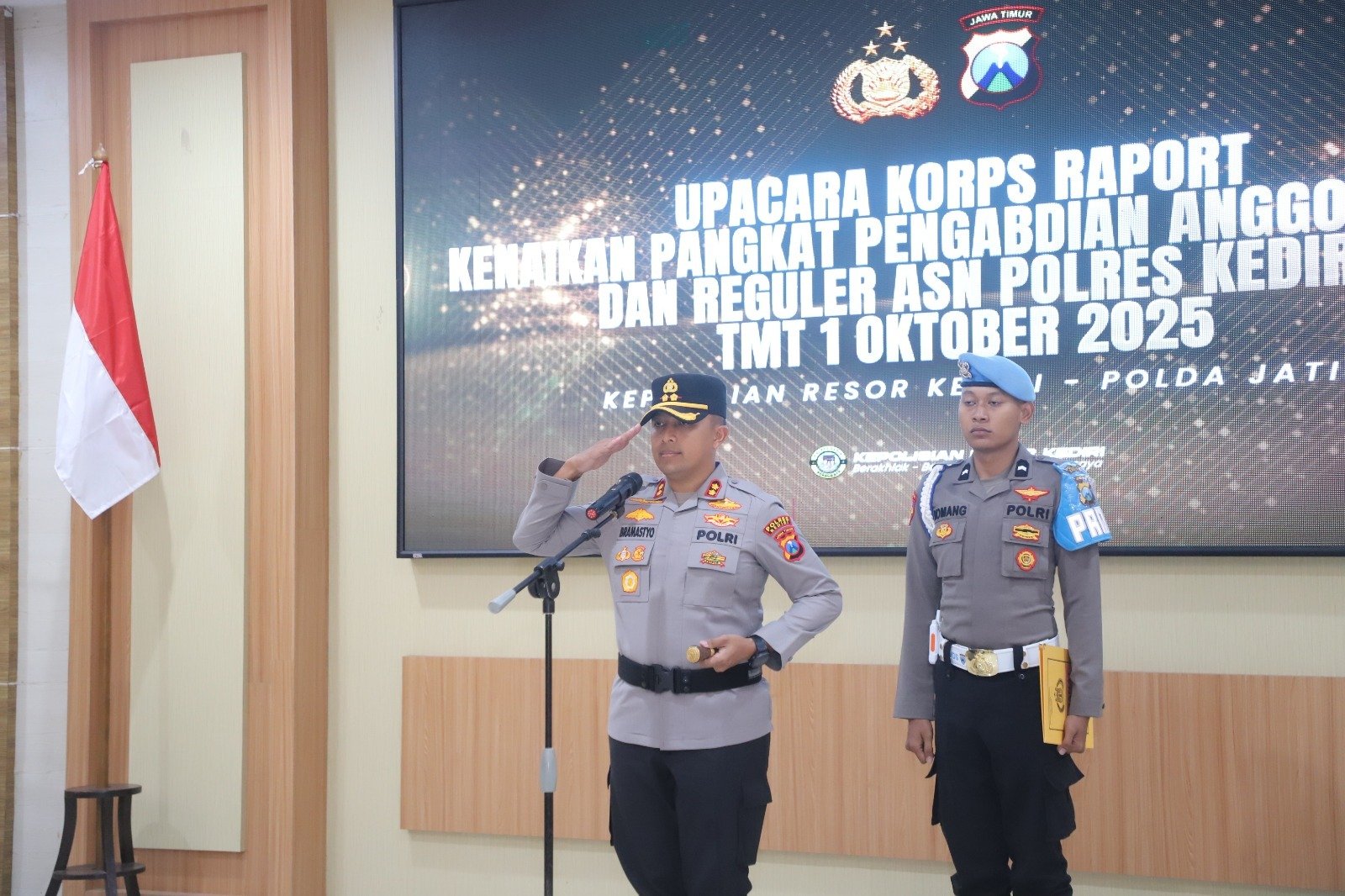 MEDIAINVESTIGASIMABES.CO.ID | KEDIRI (JATIM) ~ Upacara Korps Raport di Polres Kediri mewarnai penghujung bulan September, dengan agenda kenaikan pangkat pengabdian TMT 1 Oktober 2025 dan Korps Raport reguler ASN TMT 1 Oktober 2025.