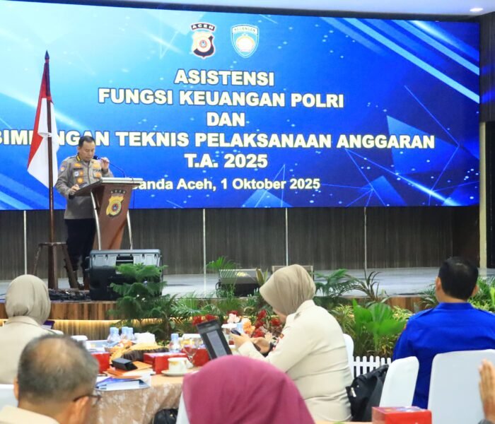 MEDIAINVESTIGASIMABES.CO.ID | BANDA ACEH — Kapolda Aceh Irjen Pol. Marzuki Ali Basyah membuka kegiatan Bimbingan Teknis (Bimtek) Pelaksanaan Anggaran Tahun 2025 sekaligus Asistensi Fungsi Keuangan Polri yang dilakukan Pusat Keuangan (Puskeu) Polri di Gedung Presisi Polda Aceh, Rabu, 1 Oktober 2025.