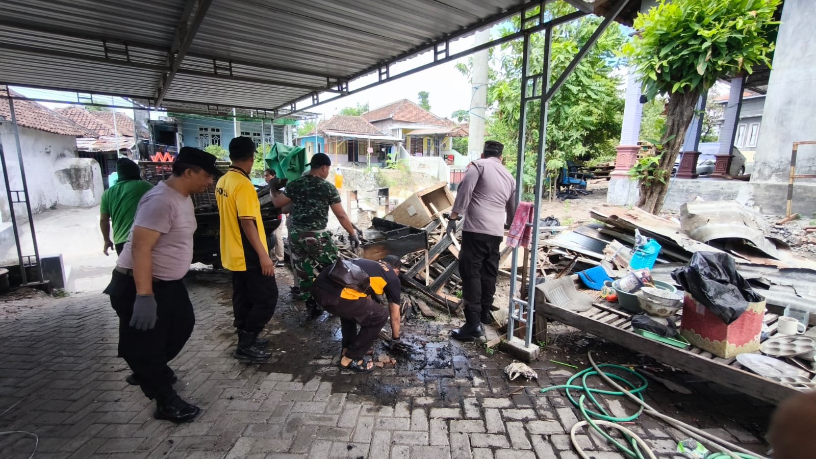 Kegiatan yang berlangsung sejak pukul 09.00 WIB ini diawali apel personel, kemudian dilanjutkan menuju lokasi kebakaran milik korban bernama Hari Cahyono. Polisi bersama TNI, Satpol PP, dan perangkat desa bergotong royong membersihkan puing-puing rumah yang terbakar.
