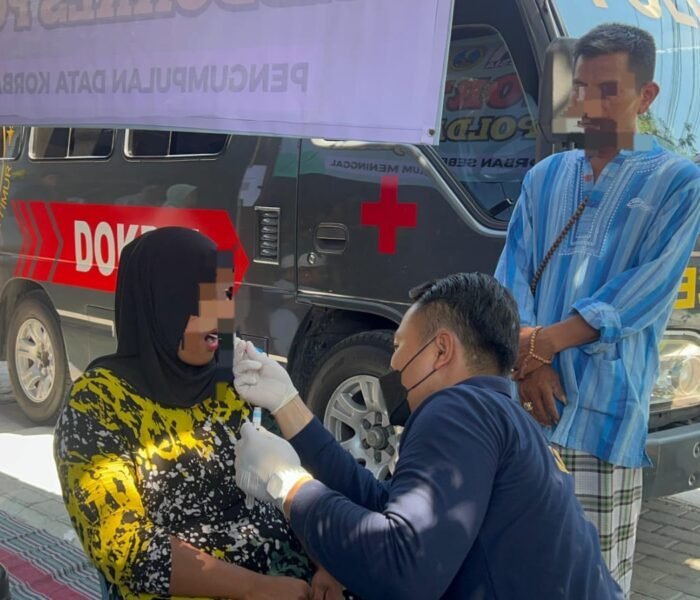 “Kami kumpulkan DNA dari keluarga dekat yang melaporkan ke posko Ante Mortem Polda Jatim,” ujar Kabid Dokkes Polda Jatim Kombes. Pol. M. Khusnan.