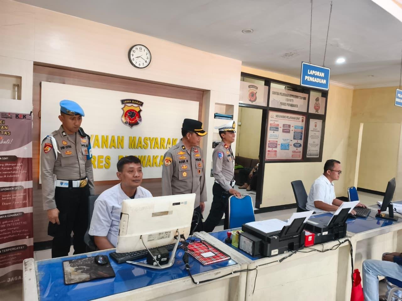 MEDIAINVESTIGASIMABES.CO.ID | PURWAKARTA (JABAR) ~ Dalam rangka memastikan kualitas pelayanan kepada masyarakat tetap optimal, Piket Pamenwas Polres Purwakarta, Kompol Acep Hasbulloh di dampingi Piket Pawas Iptu Ucup Supriadi dan Ipda Bejo Basuki serta Piket SiPropam melakukan pengecekan kesiapan pelayanan di Polres Purwakarta pada Senin, 6 Oktober 2025.