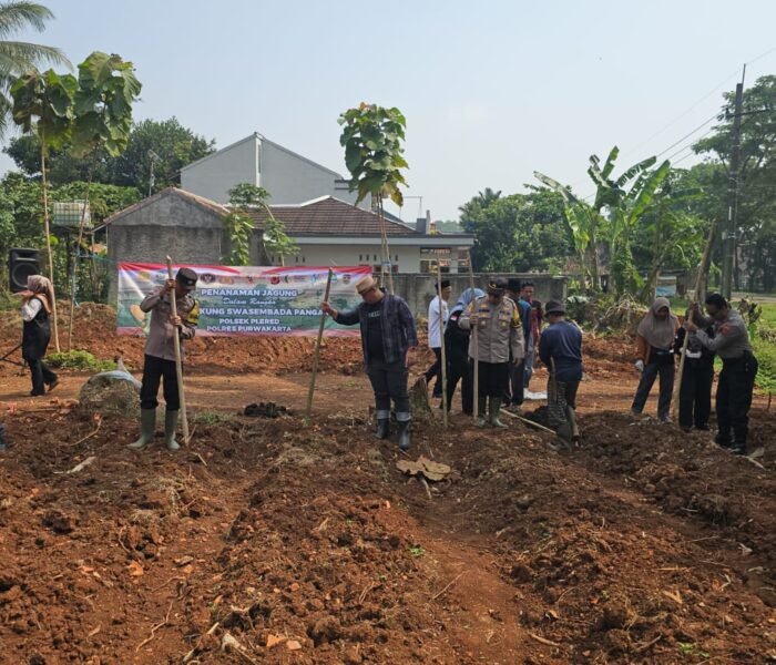 MEDIAINVESTIGASIMABES.CO.ID | PURWAKARTA (JAWA BARAT) ~ Polsek Plered, Polres Purwakarta melaksanakan penanaman jagung sebagai upaya mendukung program ketahanan pangan nasional yang didengungkan oleh Presiden Prabowo Subianto.