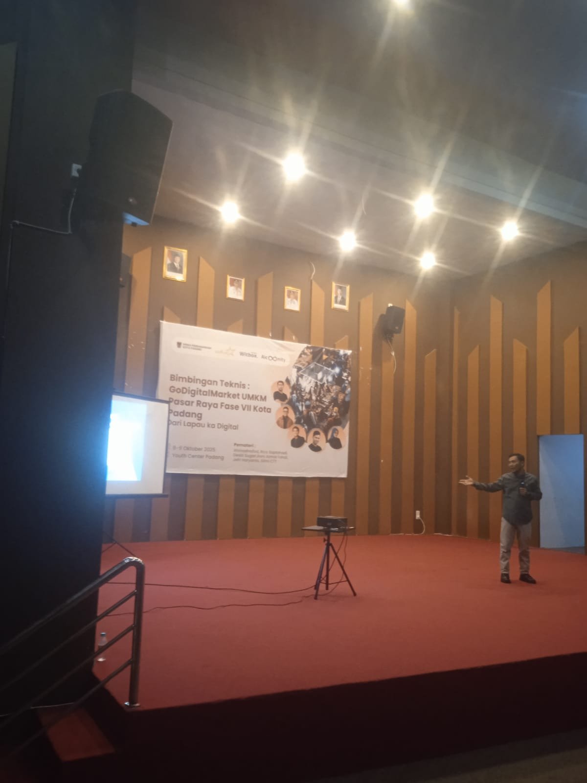 MEDIAINVESTIGASIMABES.CO.ID | PADANG (SUMATERA BARAT) ~ Pemerintah Kota Padang terus berupaya meningkatkan daya saing para pedagang dan pelaku Usaha Mikro, Kecil, dan Menengah (UMKM) di era digital. Melalui Dinas Perdagangan Kota Padang, kegiatan Bimbingan Teknis (Bimtek) Go Digital Market kembali digelar dengan tema “Dari Lapau ka Digital”, yang berlangsung di Gedung Youth Center, Rabu (8/10/2025).