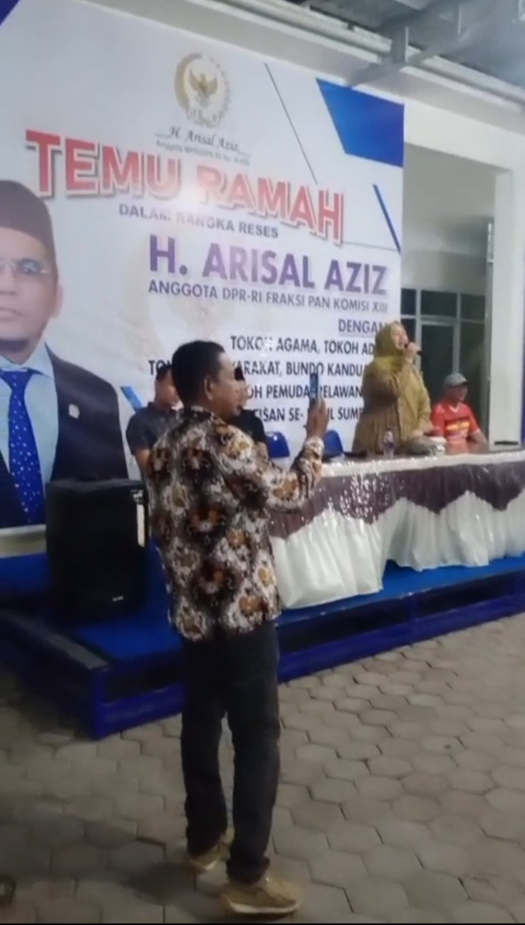 MEDIAINVESTIGASIMABES.CO.ID | PARIAMAN (SUMATERA BARAT) ~ Pada 12 Oktober 2025, H. Arisal Azis, anggota DPR RI Fraksi PAN Komisi XIII, mengadakan temu ramah dengan tokoh agama, adat, masyarakat, dan pemuda di Kampung Dalam. Acara ini dimeriahkan dengan perayaan ulang tahun ke-49 istri beliau, Ibu Lenggo Gini.