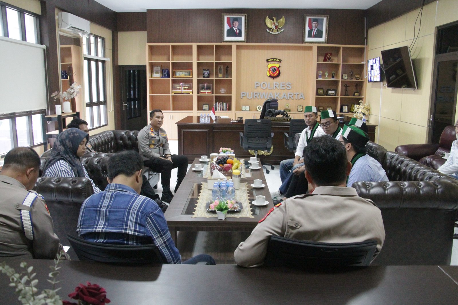 • Pertemuan di Ruang Kerja Kapolres: Kegiatan ini berlangsung di Ruang Kerja Kapolres Purwakarta, dengan Kapolres Purwakarta didampingi Wakapolres Kompol Sosialisman Muhammad Natsir, Kabag Ops, Kompol Erwan Dwiyanto, Kasat Intelkam, AKP Seftika Agreda, Kasi Propam AKP Atik Sakron serta jajaran Sat Intelkam.