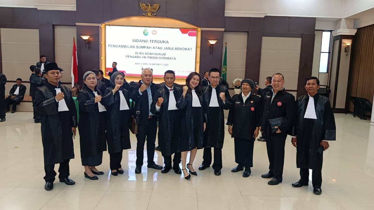 MEDIAINVESTIGASIMABES.CO.ID | SURABAYA (JATIM) — Sejarah baru tercipta dalam dunia advokat Indonesia, khususnya di Jawa Timur. Untuk pertama kalinya, Persatuan Advokat Indonesia (PERADIN) melalui Badan Pengurus Wilayah (BPW) Jawa Timur melaksanakan sumpah advokat secara mandiri, tanpa bergabung dengan organisasi advokat lain. Prosesi bersejarah ini digelar di Pengadilan Tinggi Jawa Timur, Surabaya, Kamis (16/10/2025), diikuti 35 advokat baru lulusan Pendidikan Khusus Profesi Advokat (PKPA) angkatan ke-21 dan ke-22.