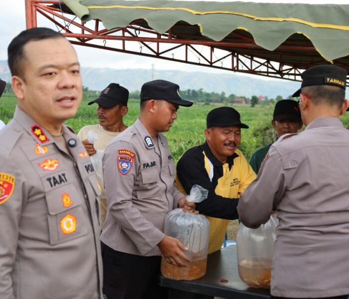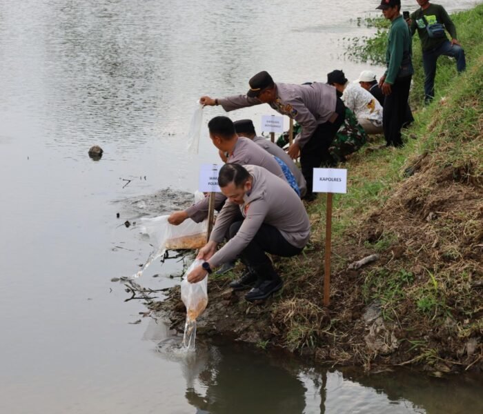 MEDIAINVESTIGASIMABES.CO.ID | TULUNGAGUNG (JAWA TIMUR) – Dalam rangka menjaga kelestarian ekosistem sungai sekaligus mendukung ketahanan pangan masyarakat, Kapolres Tulungagung AKBP Muhammad Taat Resdi memimpin kegiatan penaburan benih ikan tombro di bantaran Sungai Ngrowo atau Sungai Parit Agung di Desa Kendalbulur, Kecamatan Boyolangu, Kabupaten Tulungagung, Jumat (17/10/2025).