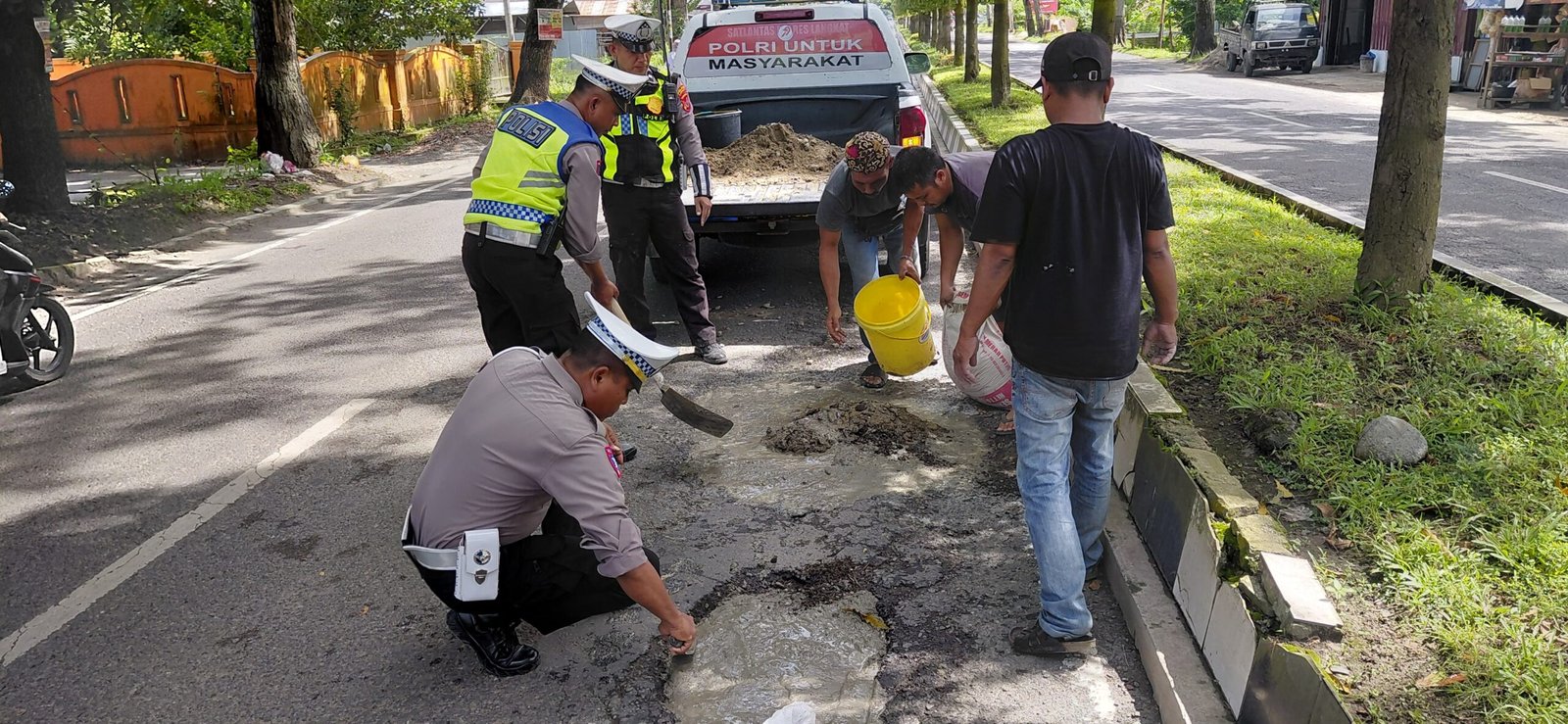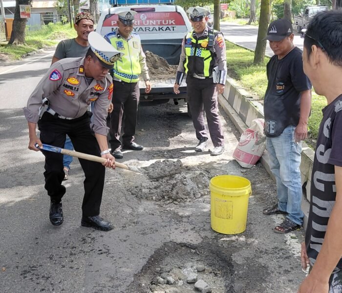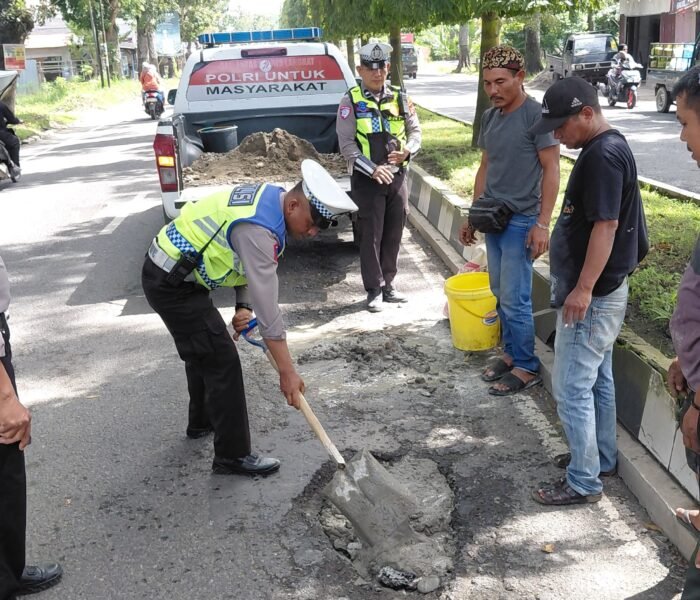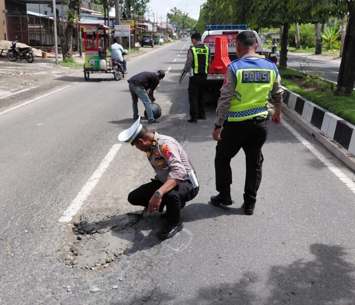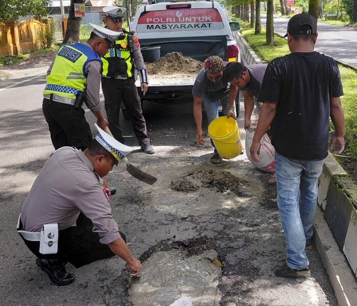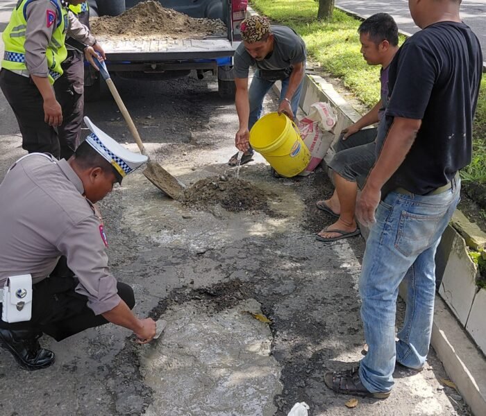 “Upaya penambalan jalan ini kami lakukan sebagai bentuk pelayanan kepada masyarakat, demi keselamatan berlalu lintas para pengguna jalan,” ujar AKP Tommy.