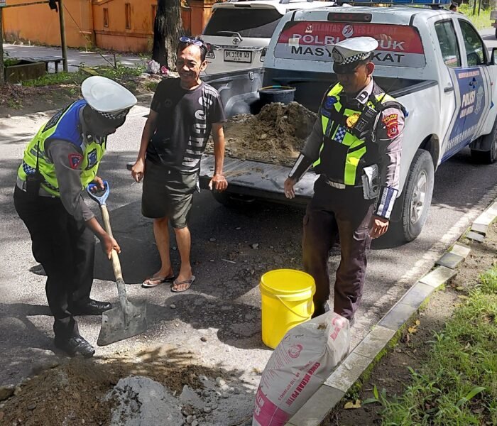 Ia menambahkan bahwa kegiatan tersebut melibatkan personel Satlantas Polres Langkat bersama masyarakat setempat, yang secara gotong royong bekerja menutup lubang-lubang di jalan yang berpotensi membahayakan pengendara.