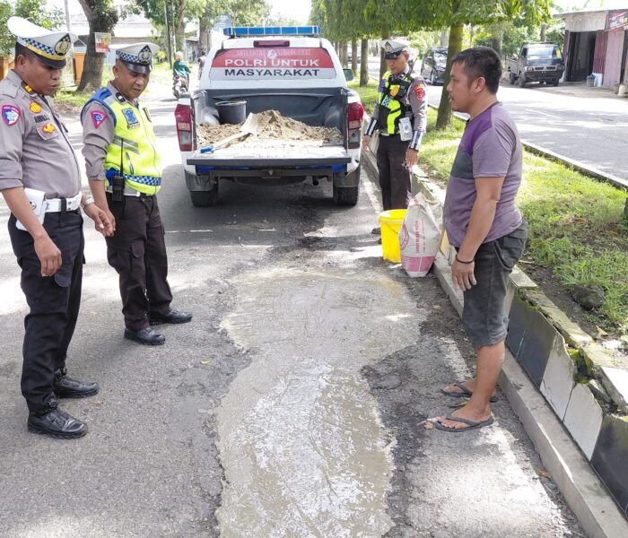 MEDIAINVESTIGASIMABES.CO.ID | LANGKAT (SUMATERA UTARA) ~ Dalam upaya menjaga keselamatan berlalu lintas dan memberikan pelayanan kepada masyarakat, personel Satuan Lalu Lintas (Satlantas) Polres Langkat melakukan penambalan jalan berlubang di Sepanjang Jalan Proklamasi Kelurahan Kwala Bingai, Kecamatan Stabat, Kabupaten Langkat, pada Selasa (21/10/2025) pagi.