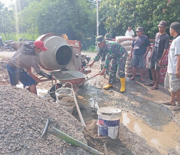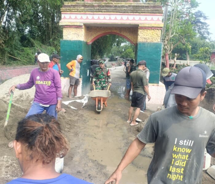 Karya Bhakti Pengecoran Jalan Masuk TPU Centong Lingk Centong Kel, Bawang Kec, Pesantren Kota Kediri Koramil 0809-02 Pesantren Bersama Warga
