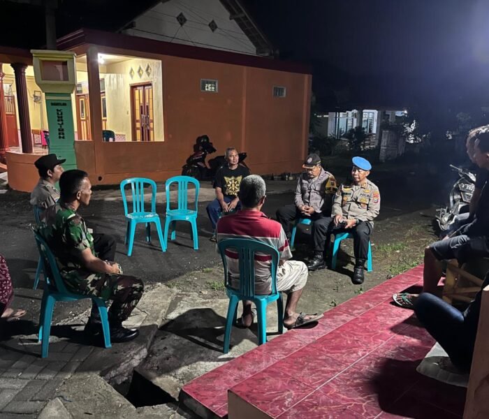 MEDIAINVESTIGASIMABES.CO.ID | KEDIRI (JAWA TIMUR) – Kepala Seksi Profesi dan Pengamanan (Kasi Propam) Polres Kediri AKP Sukiman didampingi Kapolsek Kunjang Polres Kediri AKP Udi Waluyo bersama anggotanya melaksanakan kegiatan patroli dan pemantauan terhadap kegiatan warga yang sedang melaksanakan ronda malam di Pos Satkamling Desa Dungus, Kecamatan Kunjang, Kabupaten Kediri, pada Jumat (24/10/2025).