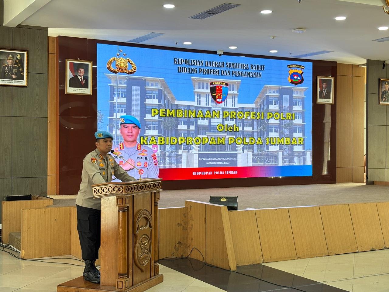 MEDIAINVESTIGASIMABES.CO.ID | PADANG (SUMBAR) – Bidpropam Polda Sumatera Barat menggelar kegiatan Pembinaan Pemulihan Profesi Polri bertema “Optimalisasi dan Mitigasi Pelanggaran Disiplin, Kode Etik Profesi Polri, serta Pidana” di Aula Lantai 4 Mapolda Sumbar, Jumat (31/10/2025).