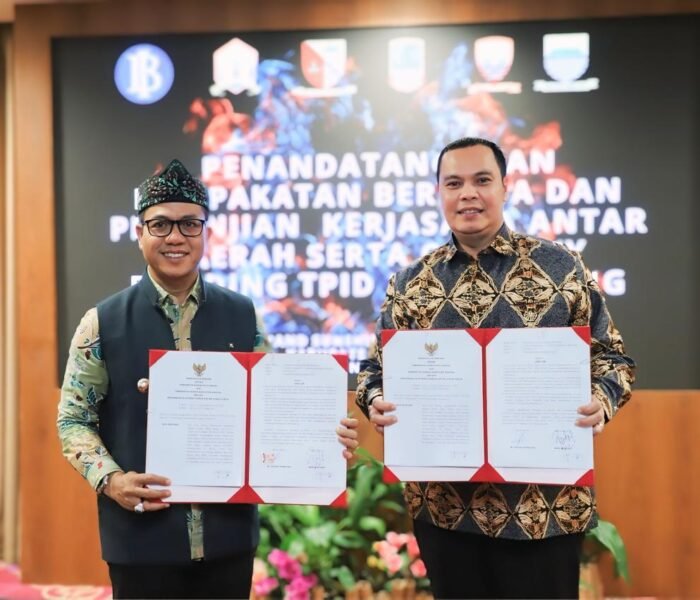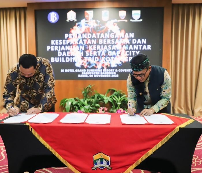 MEDIAINVESTIGASIMABES.CO.ID | KABUPATEN BANDUNG ~ Pemerintah Kabupaten Bandung dan Pemerintah Kota Serang menandatangani kesepakatan bersama (MoU) dalam bidang pengembangan potensi daerah dan pelayanan publik. Penandatanganan dilakukan oleh Bupati Bandung, Dadang Supriatna dan Wali Kota Serang, Budi Rustandi di Hotel Sunshine, Soreang, Kabupaten Bandung, (6/11/2025).