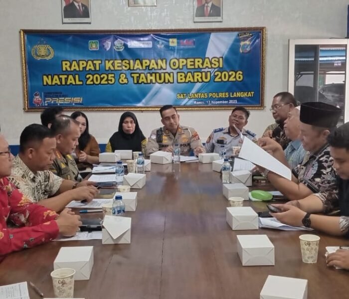 MEDIAINVESTIGASIMABES.CO.ID | LANGKAT (SUMATERA UTARA) ~ Dalam rangka menyambut perayaan Natal 2025 dan Tahun Baru 2026, Polres Langkat melalui Satuan Lalu Lintas menggelar kegiatan Forum Keselamatan Lalu Lintas dan Rapat Kesiapan Natal 2025 dan Tahun Baru 2026, yang dilaksanakan pada Kamis, 13 November 2025, bertempat di Aula Satlantas Polres Langkat.
