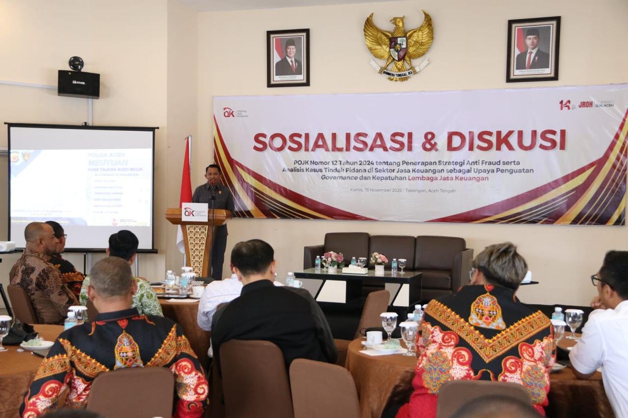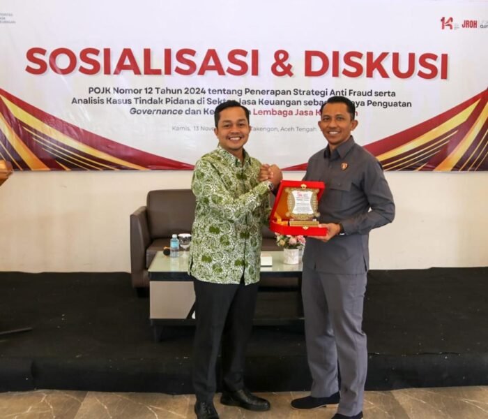 MEDIAINVESTIGASIMABES.CO.ID | TAKENGON (ACEH TENGAH) — Kasubdit II Ditrekrimsus TIPID Fismondev Polda Aceh Kompol Frihamdeni, S.H, S.I.K, M.A., menghadiri Sosialisasi dan Diskusi POJK Nomor 12 tahun 2024 tentang Penerapan Strategi Anti Fraud serta analisis tindak pidana di sektor jasa keuangan sebagai upaya penguatan governance dan kepatuhan lembaga jasa keuangan.