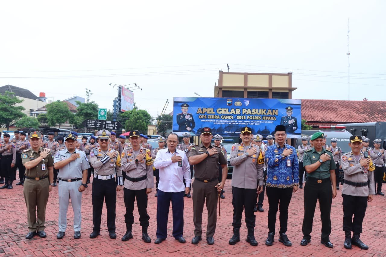 Upacara gelar pasukan Operasi Zebra Candi 2025 yang berlangsung di halaman Mapolres Jepara dipimpin langsung Bupati Jepara Witiarso Utomo, pada Senin (17/11/2025) pagi.