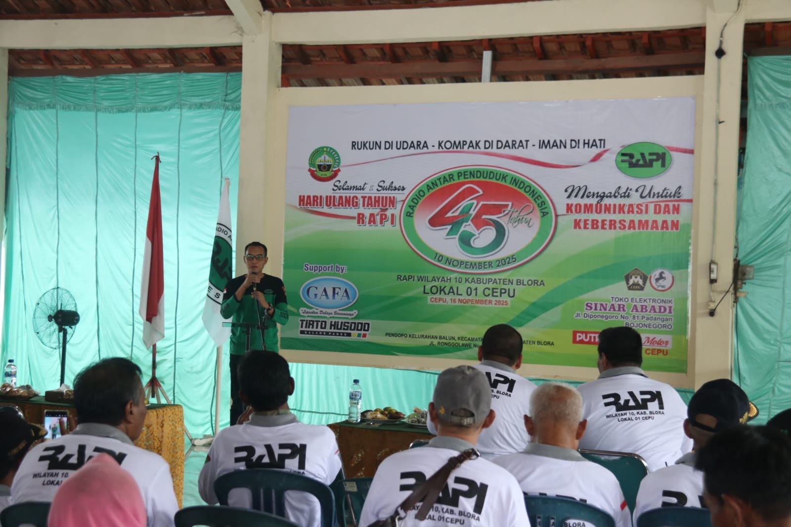 MEDIAINVESTIGASIMABES.CO.ID | BLORA (JAWA TENGAH) — Bupati Blora Arief Rohman, berikan apresiasi kepada Radio Antar Penduduk Indonesia (RAPI) atas kontribusinya dalam mendukung komunikasi darurat, penyampaian informasi cepat, serta penguatan koordinasi lintas sektor di wilayah Blora. Hal tersebut disampaikan saat Ulang Tahun RAPI Ke-45 yang diselenggarakan di Balai Kelurahan Balun, Cepu. Minggu (16/11/2025).