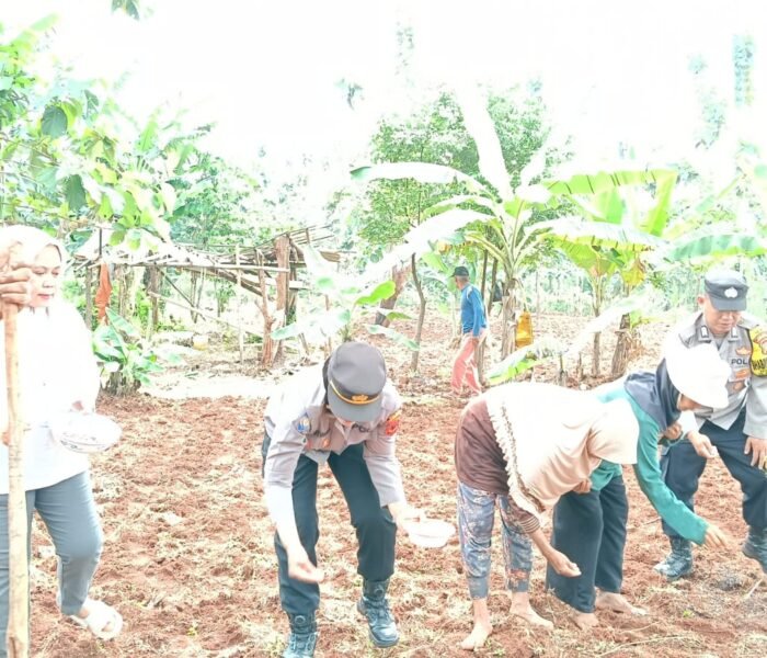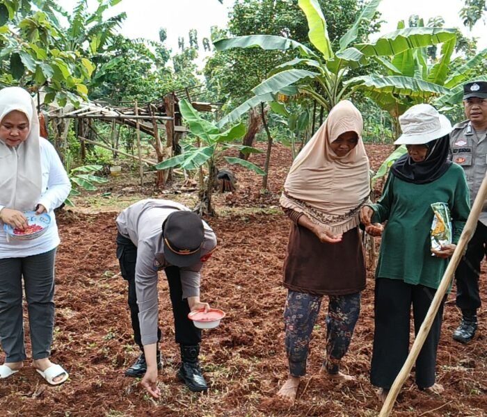 MEDIAINVESTIGASIMABES.CO.ID | PURWAKARTA (JAWA BARAT) ~ IPDA Rustinah dan Bhabinkamtibmas Polsek Purwakarta Kota, Bripka Aep Kurnia, melaksanakan kegiatan penanaman jagung bersama kelompok tani Motekar di lahan Perhutani Cigelam, Selasa (18/11/2025).