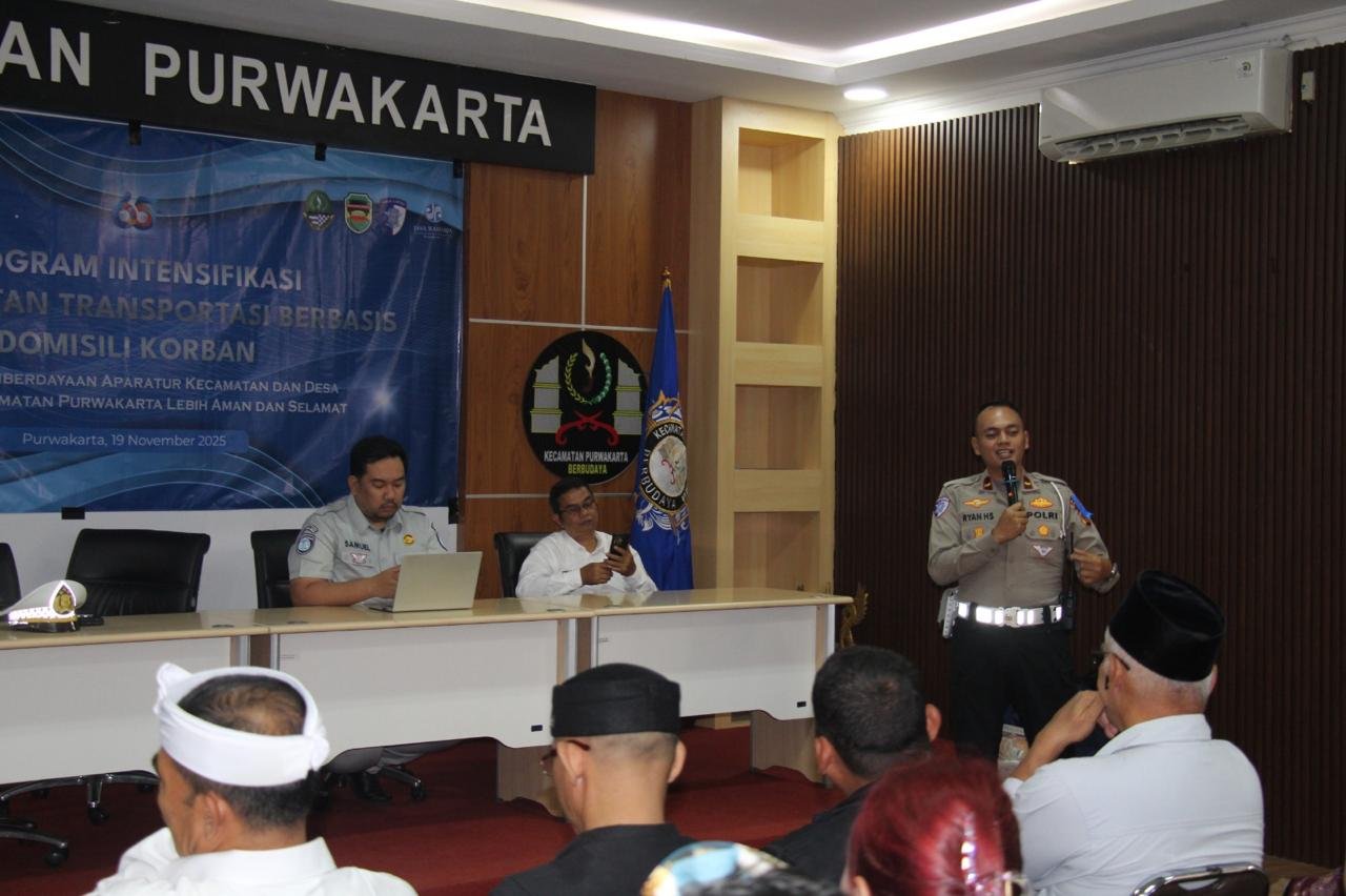 Satlantas Polres Purwakarta mengimbau ketua RT dan RW membantu mensosialisasikan pentingnya keselamatan berlalu lintas, menekan angka kecelakaan, dan mewujudkan Zero Accident. Purwakarta, 20 November 2025. (Elva‑Red)