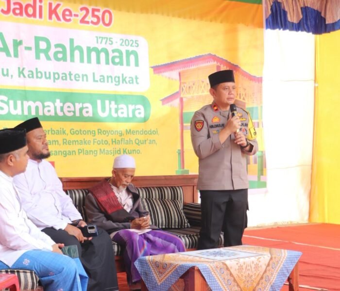 MEDIAINVESTIGASIMABES.CO.ID | LANGKAT (SUMATERA UTARA) – Wakil Kepala Kepolisian Resor (Waka Polres) Langkat, Kompol Husnil Mubarak Daulay, SH, SIK, MIK, mewakili Kapolres Langkat AKBP David Triyo Prasojo, SH, SIK, M.Si, menghadiri peringatan Hari Jadi ke-250 Tahun Masjid Jaya Ar-Rahman pada Kamis (20/11/2025) pukul 07.30 WIB, bertempat di Masjid Jaya Ar-Rahman, Lingkungan I, Kelurahan Bingai, Kecamatan Wampu, Kabupaten Langkat.