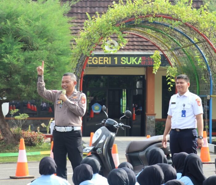 MEDIAINVESTIGASIMABES.CO.ID | PURWAKARTA (JAWA BARAT) ~ Satlantas Polres Purwakarta menggelar program Polantas Menyapa dengan tema Safety Riding di SMKN 1 Sukatani. Kegiatan ini bertujuan meningkatkan kesadaran pelajar akan pentingnya keselamatan berlalu lintas melalui edukasi etika berkendara, penggunaan helm SNI, kelengkapan kendaraan, dan bahaya berkendara ugal-ugalan, (24/11/2025).