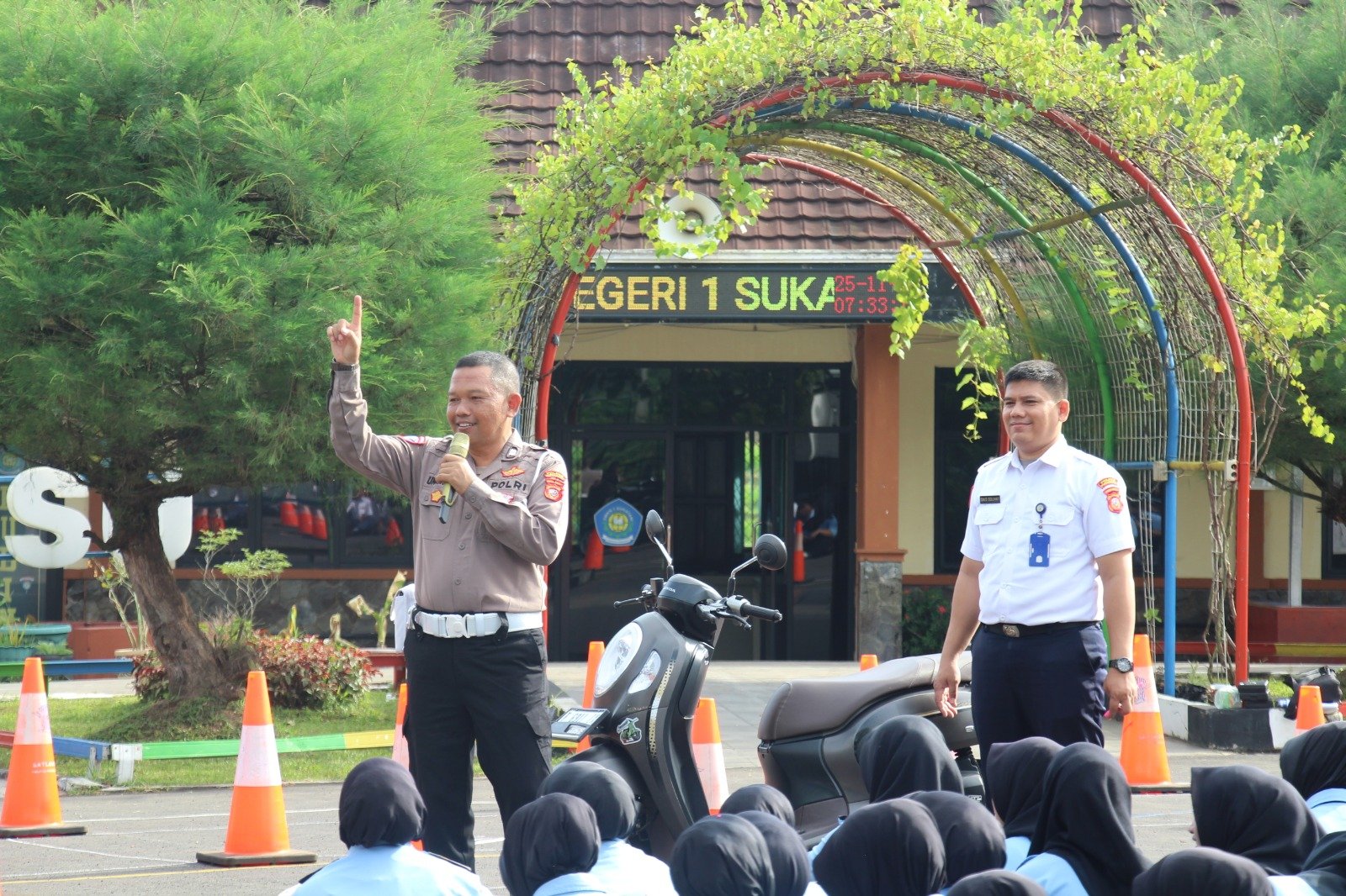 MEDIAINVESTIGASIMABES.CO.ID | PURWAKARTA (JAWA BARAT) ~ Satlantas Polres Purwakarta menggelar program Polantas Menyapa dengan tema Safety Riding di SMKN 1 Sukatani. Kegiatan ini bertujuan meningkatkan kesadaran pelajar akan pentingnya keselamatan berlalu lintas melalui edukasi etika berkendara, penggunaan helm SNI, kelengkapan kendaraan, dan bahaya berkendara ugal-ugalan, (24/11/2025).