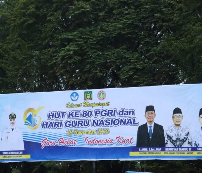 MEDIAINVESTIGASIMABES.CO.ID | LANGKAT (SUMATERA UTARA) – Kapolres Langkat AKBP David Triyo Prasojo, S.H, S.I.K, M.Si, yang diwakili Wakapolres Kompol Husnil Mubarak Daulay, S.H., S.I.K., M.I.K.,menghadiri Upacara Bendera Peringatan HUT ke-80 Persatuan Guru Republik Indonesia (PGRI) dan Hari Guru Nasional (HGN) Tahun 2025 yang dilaksanakan di Lapangan Alun-alun T. Amir Hamzah, Stabat, Selasa (25/11/2025).