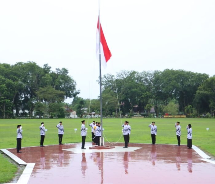 Upacara berlangsung penuh khidmat dengan diikuti jajaran Dinas Pendidikan, pengawas sekolah, kepala sekolah, organisasi PGRI, serta ribuan guru SD dan SMP se-Kabupaten Langkat.