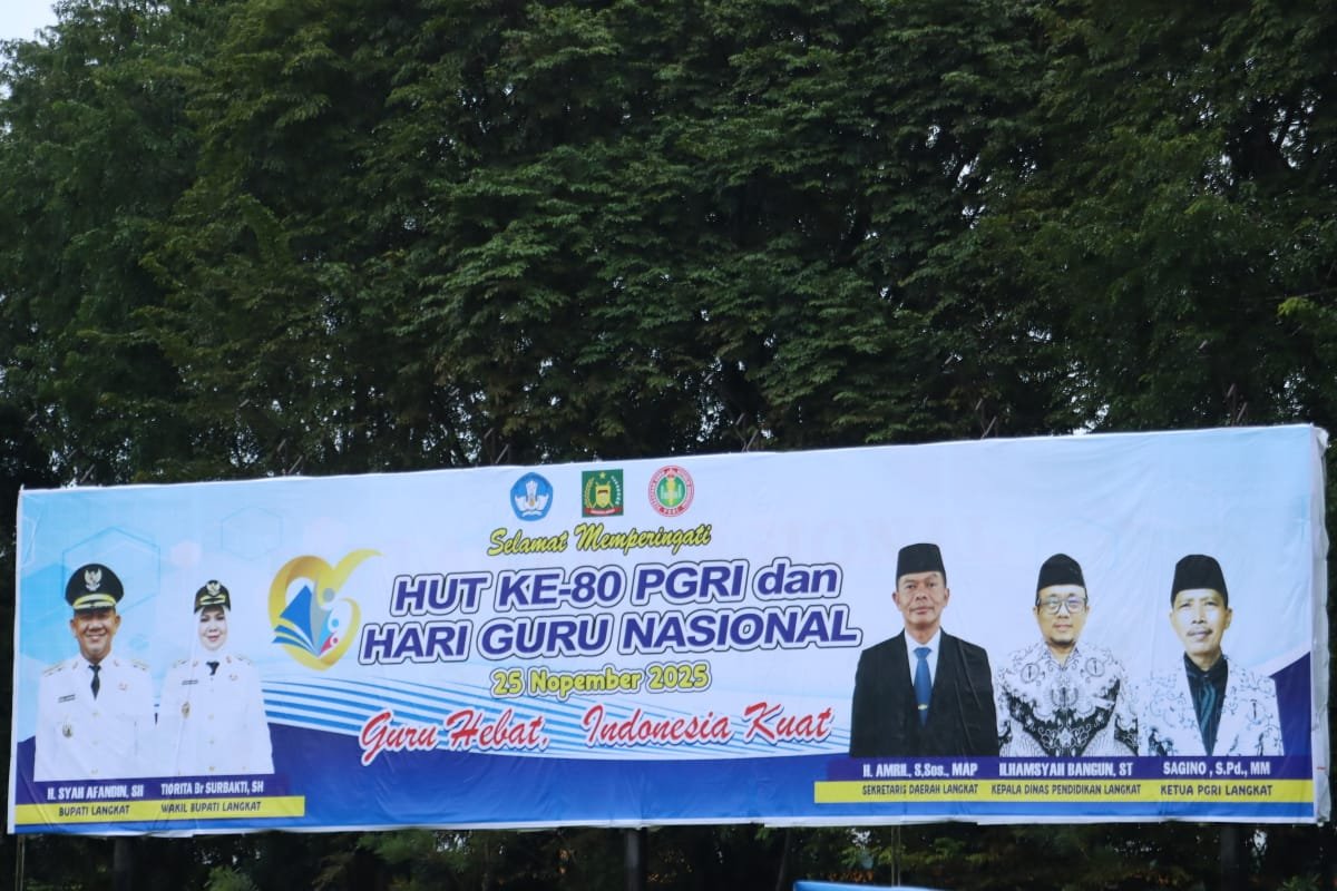Upacara berlangsung penuh khidmat dengan diikuti jajaran Dinas Pendidikan, pengawas sekolah, kepala sekolah, organisasi PGRI, serta ribuan guru SD dan SMP se-Kabupaten Langkat.
