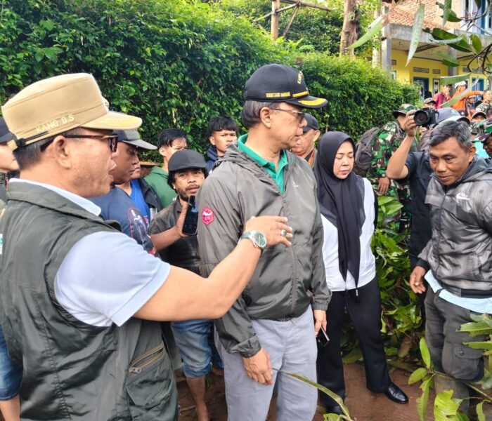 MEDIAINVESTIGASIMABES.CO.ID | KAB BANDUNG (JAWA BARAT) ~ Bupati Bandung Dadang Supriatna meninjau langsung lokasi bencana longsor di Kampung Condong, Desa Wargaluyu, Kecamatan Arjasari, Kabupaten Bandung, Sabtu (6/12/2025). Longsor yang mengakibatkan tiga orang warga hilang diduga tertimbun material longsor dan dua rumah rusak berat itu terjadi pada Jumat (5/12/2025) sore kemarin setelah kawasan tersebut diguyur hujan lebat.