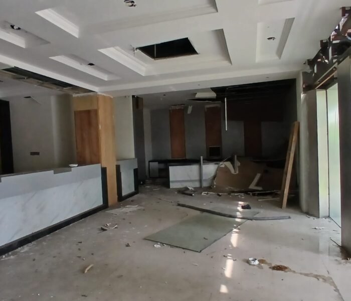 Gedung tersebut dibangun oleh PT Andina Teknik Konstruksi berdasarkan kontrak bernomor 28/SP/PBG/CK-DPUPR/APBD 2023, dengan CV Garis Perak Consultant sebagai konsultan pengawas. Bangunan dua lantai seluas 1.815 meter persegi itu kini justru terlihat hancur pada sejumlah bagian, seolah tidak pernah melalui proses pekerjaan yang sesuai standar.