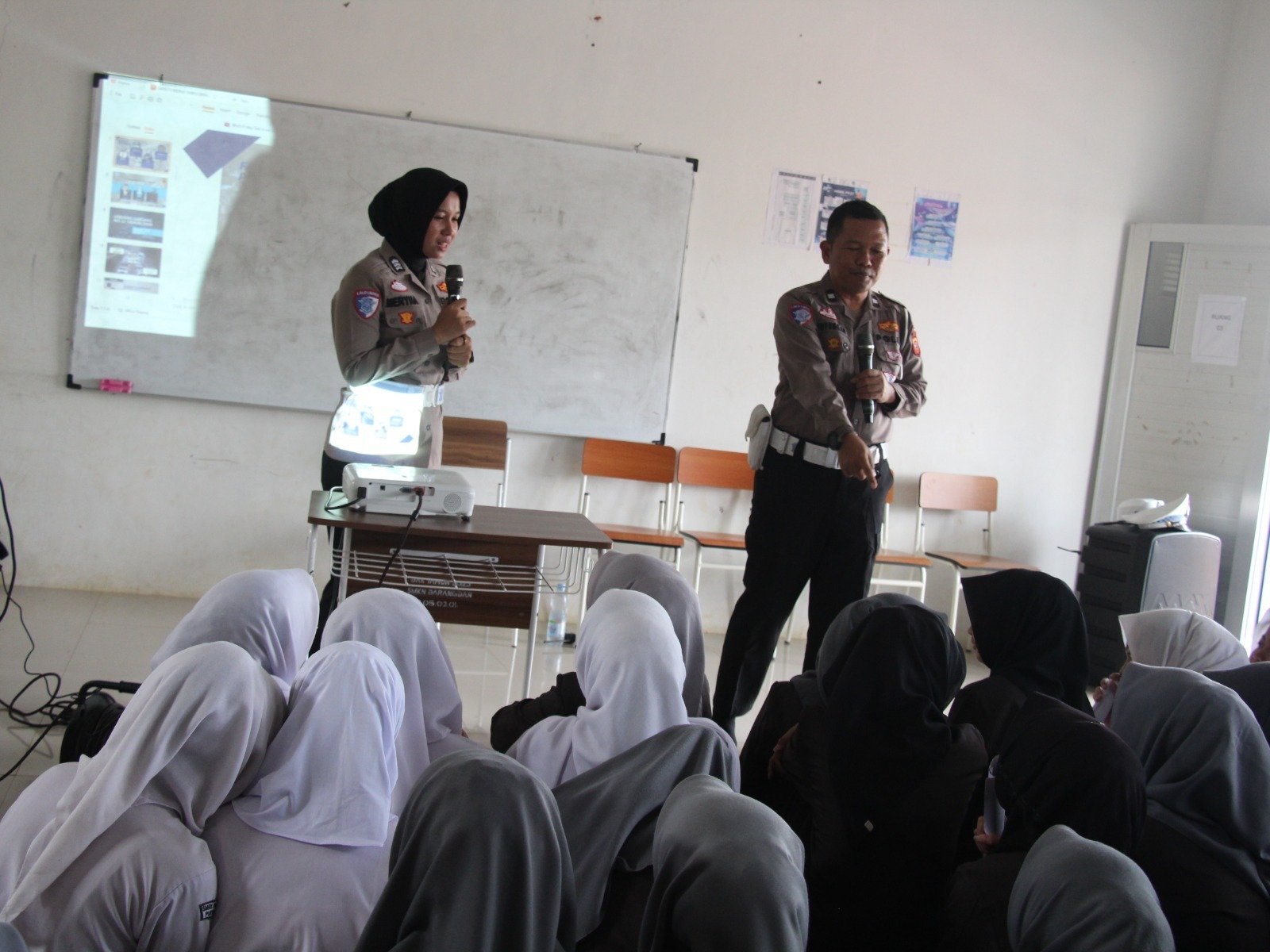 Dalam kegiatan tersebut, petugas Satlantas memberikan materi mengenai cara berkendara yang aman dan benar, pentingnya memakai helm berstandar SNI, etika berlalu lintas, dampak buruk pelanggaran dan kecelakaan pada usia remaja, serta bahaya mengendarai motor secara ugal-ugalan.