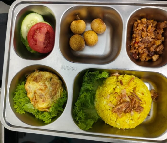 Pemeriksaan dilakukan secara komprehensif menggunakan metode kimiawi dan organoleptik, meliputi memastikan bahan baku dalam kondisi segar dan aman dikonsumsi, proses pengemasan sesuai SOP, uji organoleptik, dan pemeriksaan kimiawi untuk memastikan tidak terdapat kandungan berbahaya dalam makanan.