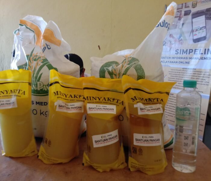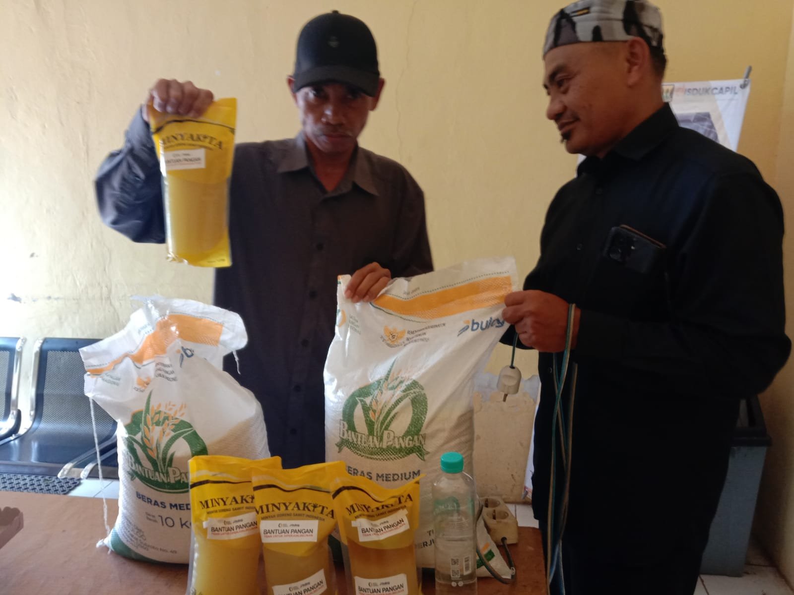 Kepala Desa Palasari Hilir Muhtar Menyalurkan Beras Bulog 10 Kg dan Miyak Goreng 1 Liter