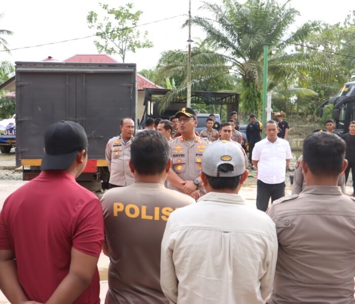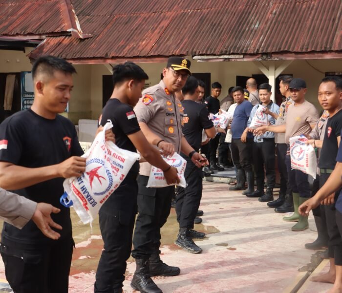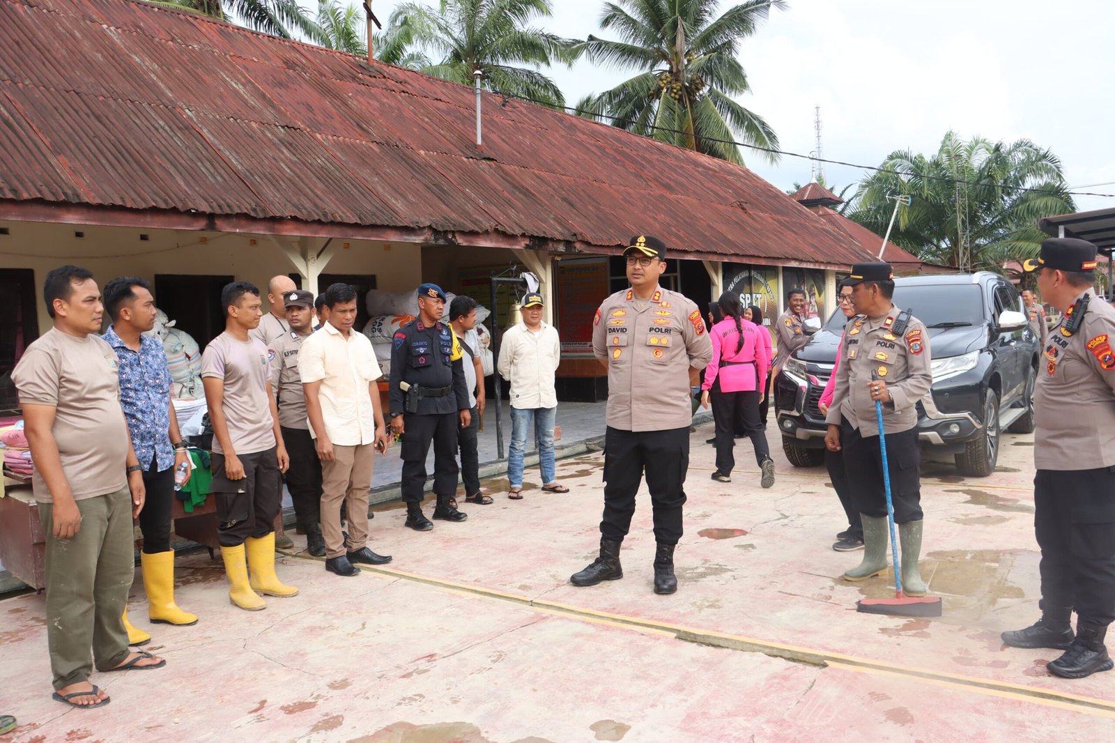 MEDIAINVESTIGASIMABES.CO.ID | LANGKAT (SUMATERA UTARA) – Kapolres Langkat AKBP David Triyo Prasojo, S.H., S.I.K., M.Si. memberikan motivasi serta bantuan kepada Polsek Tanjung Pura yang terdampak bencana banjir. Kegiatan tersebut dilaksanakan pada Senin, 15 Desember 2025, sekira pukul 16.00 WIB, bertempat di Mako Polsek Tanjung Pura.