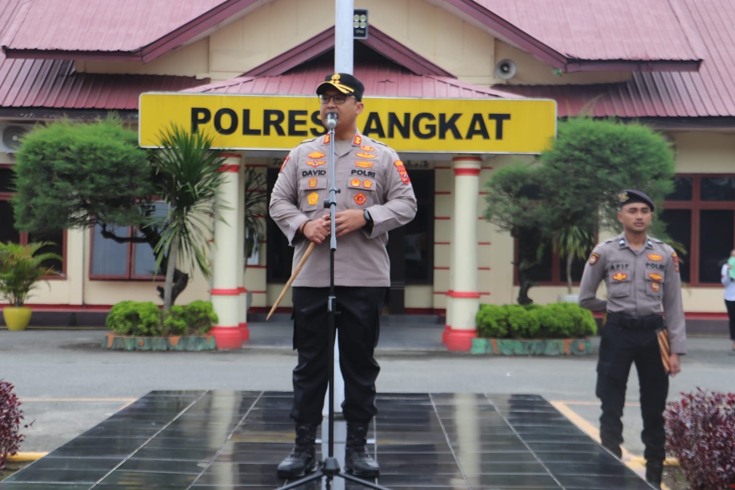 MEDIAINVESTIGASIMABES.CO.ID | (LANGKAT ) SUMATERA UTARA) – Kapolres Langkat AKBP David Triyo Prasojo, S.H., S.I.K., M.Si. menegaskan pentingnya pendekatan humanis serta percepatan pemulihan pasca bencana banjir dalam pelaksanaan tugas kepolisian. Hal tersebut disampaikan saat memimpin apel pagi jam pimpinan di Polres Langkat, Selasa (16/12/2025).