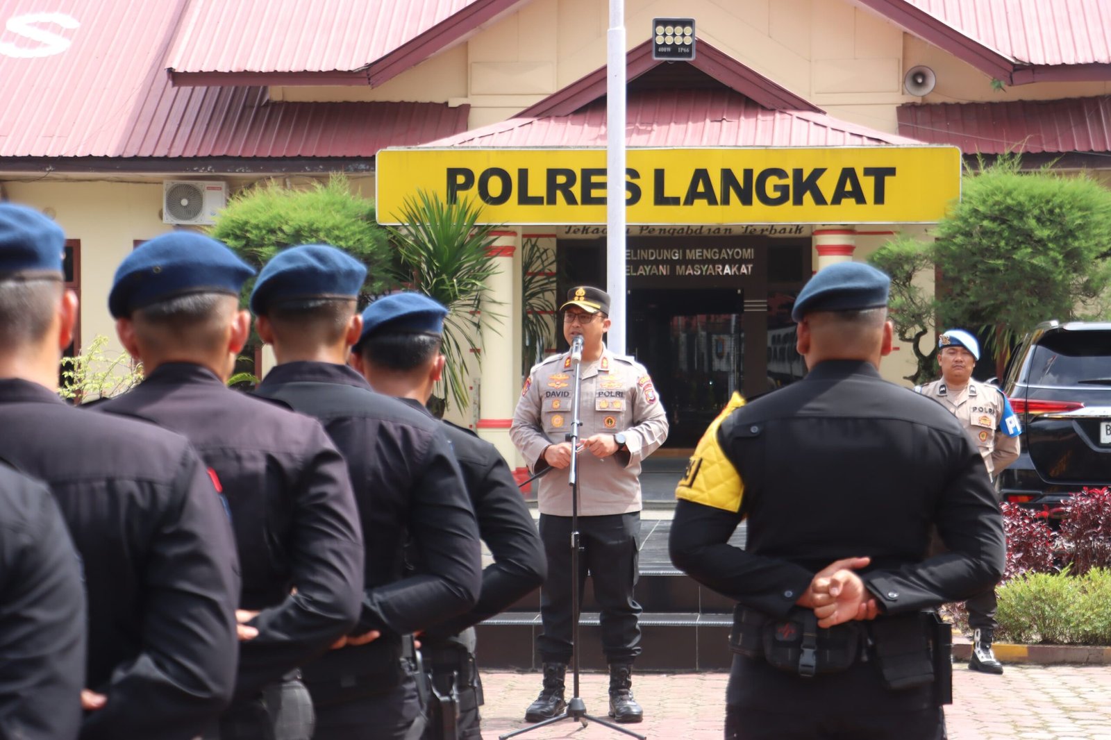 Apel dipimpin langsung oleh Kapolres Langkat, AKBP David Triyo Prasojo SH, SIK, M.Si, didampingi Wakapolres Langkat beserta para Pejabat Utama Polres Langkat, serta Danki Pasmob 1, Ipda Usmanto, S.H.