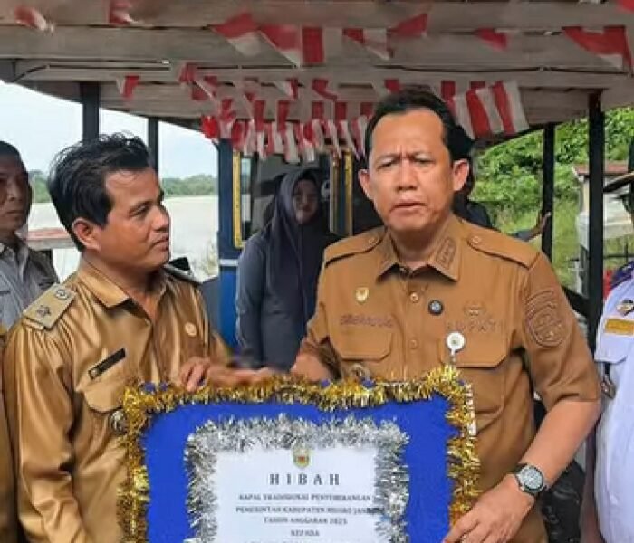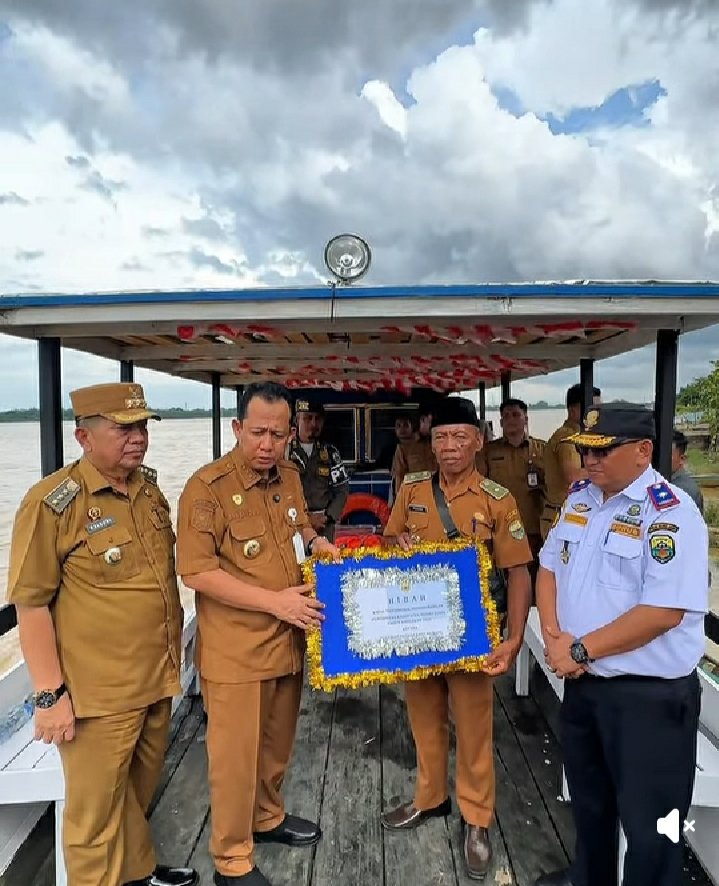 MEDIAINVESTIGASIMABES.CO.ID | PROVINSI JAMBI ~ Bupati kabupaten Muaro Jambi DR.Bambang Bayu Suseno.Sp.MM.Msi baru baru ini serahkan dua unit kapal motor untuk masyarakat desa Ranto Mano dan desa Sekernan, bertempat di wilayah desa Ranto majo.