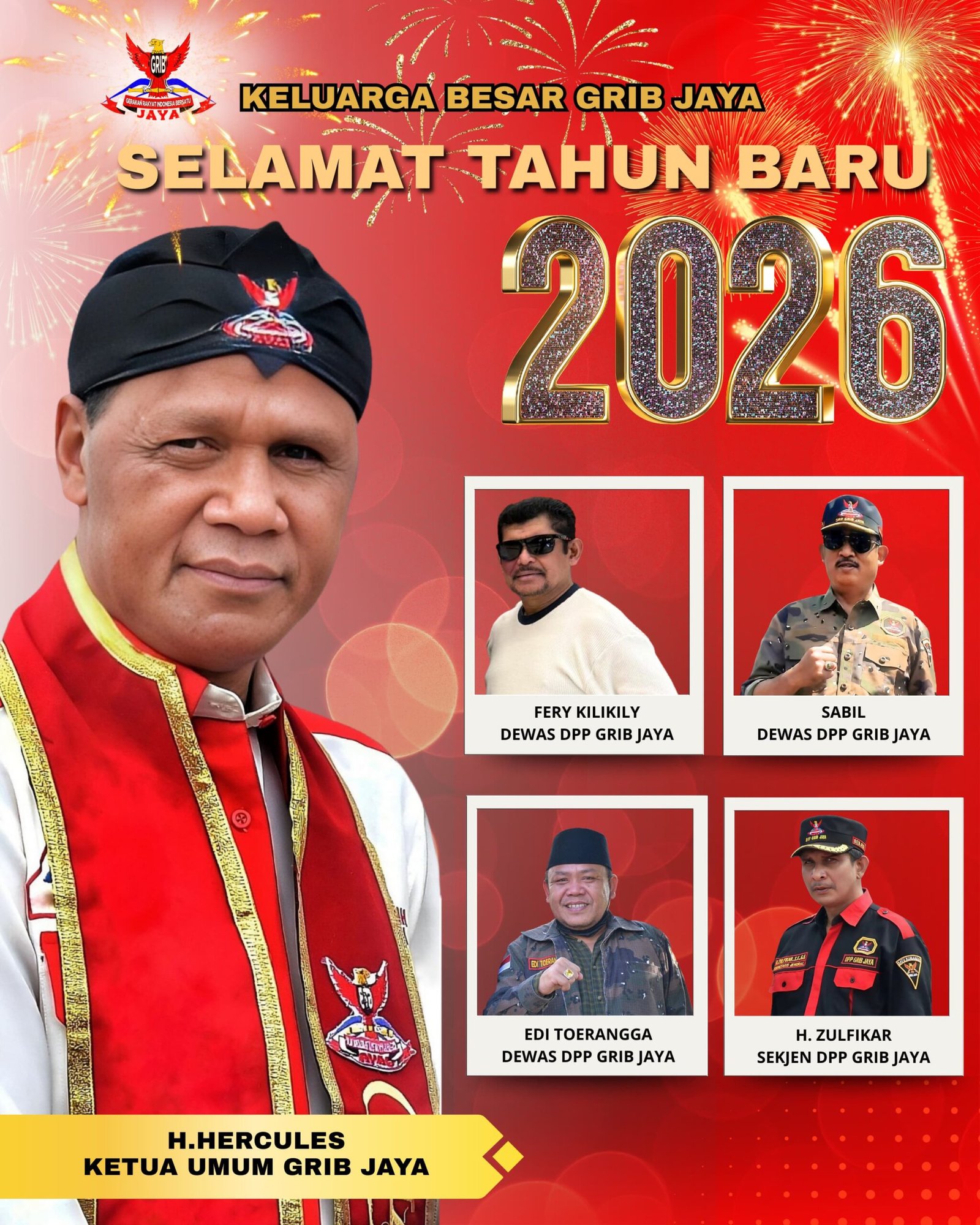 MEDIAINVESTIGASIMABES.CO.ID | JAKARTA ~ Keluarga Besar Gerakan Rakyat Indonesia Bersatu (GRIB) Jaya mengucapkan selamat Tahun Baru 2026 kepada seluruh masyarakat Indonesia.