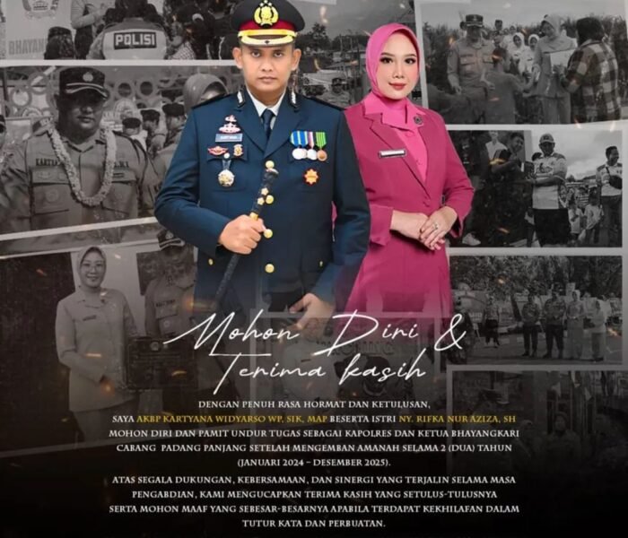 AKBP Kartyana Widyarso Wardoyo Putro, S.I.K., M.A.P., menuntaskan tugasnya hampir 2 tahun di Padang Panjang dan kini mengemban tugas sebagai Kapolres Dharmasraya.