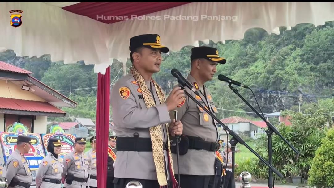 MEDIAINVESTIGASIMABES.CO.ID | TANAH DATAR (SUMATERA BARAT) ~ Rotasi Kepimpinan dijajaran Polda Sumatera Barat mengakhiri masa jabatan AKBP Kartyana Widyarso Wardoyo Putro, S.I.K., M.A.P., sebagai Kopres Padang Panjang dan digantikan Kapolres Padang Panjang AKBP Wisnu Hadi, S.I.K., M.I.K., sebagai Kapolres Padang Panjang yang baru.