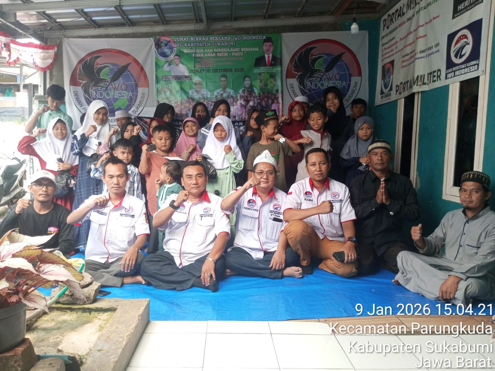 MEDIAINVESTIGASIMABES.CO.ID | SUKABUMI (JAWA BARAT) – Dalam rangka menumbuhkan kepedulian sosial serta mempererat tali silaturahmi dengan masyarakat, Ikatan Wartawan Online (IWO) Indonesia DPD Kabupaten Sukabumi kembali menggelar kegiatan Jumat Berkah dengan memberikan santunan kepada anak-anak yatim-piatu. Kegiatan tersebut dilaksanakan di Perum Pusaka Parungkuda, Kecamatan Parungkuda, Kabupaten Sukabumi, pada Jumat, 9 Januari 2026.