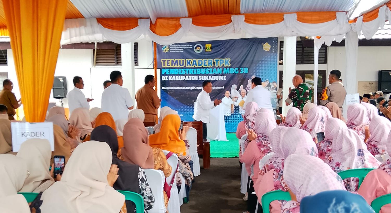 Dalam acara yang digelar di Halaman Kantor Kecamatan Kabandungan Wihaji hadir sebagai bagian dari agenda pembinaan dan penguatan program keluarga berencana serta pembangunan keluarga di wilayah Jawa Barat. Spanduk besar bertuliskan “Selamat Datang Menteri Kependudukan dan Pembangunan Keluarga/BKKBN” terpampang di lokasi acara, menandai pentingnya kunjungan tersebut.