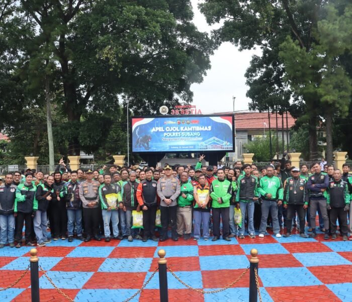 MEDIAINVESTIGASIMABES.CO.ID | SUBANG (JAWA BARAT) ~ Polres Subang menggelar Apel Ojol Kamtibmas pada Kamis, 22 Januari 2026, di Lapangan TTT Polres Subang. Kegiatan ini bertujuan memperkuat sinergi antara Polri dan ojek online dalam menjaga keamanan dan ketertiban.