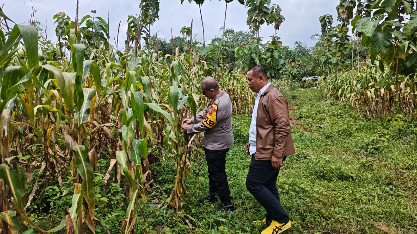 Kapolsek Plered AKP Ali Murtadho: “Pengecekan ini pastikan tanaman jagung terjaga dan siap panen, terutama dengan cuaca yang sering hujan.”