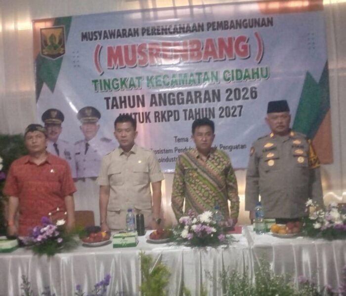 Media Investigasi Mabes Co I’d Sukabumi Pemerintah Kecamatan Cidahu menggelar Musyawarah Perencanaan Pembangunan (Musrenbang) Tingkat Kecamatan Cidahu Tahun Anggaran 2026 untuk penyusunan RKPD Tahun 2027. Kegiatan tersebut berlangsung di Aula Kecamatan Cidahu dan dihadiri unsur Forkopimcam, anggota DPRD Kabupaten Sukabumi, para kepala desa se-Kecamatan Cidahu, serta tokoh masyarakat, tokoh agama, dan organisasi profesi, pada kamis (12/2/2026).