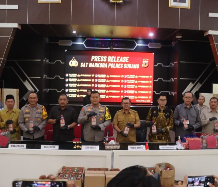 Kapolres Subang AKBP Dony Eko Wicaksono memimpin konferensi pers, didampingi Wakil Bupati Subang Agus Masykur Rosyadi dan Ketua DPRD Subang Victor Wirabuana Abdurachman. Kasus ini bermula pada Minggu, 8 Februari 2026, ketika korban mengonsumsi miras oplosan jenis Vodka BigBoss yang dicampur minuman energi.