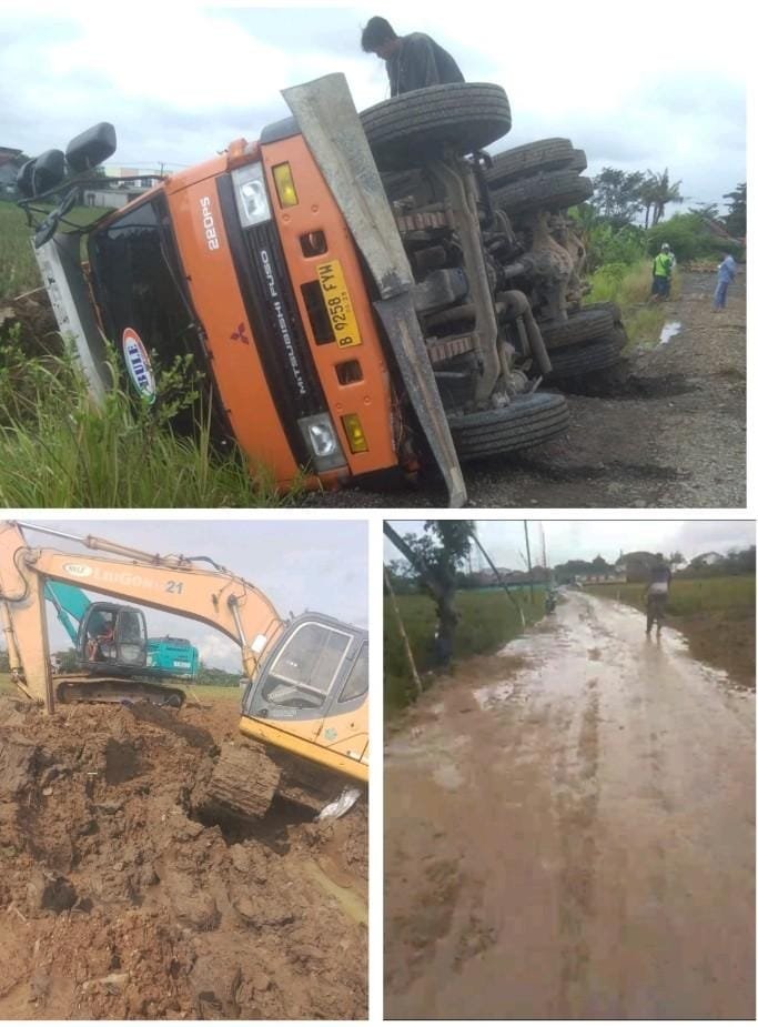 MEDIAINVESTIGASIMABES.CO.ID | KABUPATEN BEKASI (JAWA BARAT) ~ Insiden tergulingnya mobil proyek pengurugan kembali membuka borok lemahnya pengawasan keselamatan kerja di Desa Sukaasih. Proyek pengurugan yang berlokasi di Kampung Warung Bingung–Cangkring RT 005/RW 002 diduga beroperasi tanpa standar Keselamatan dan Kesehatan Kerja (K3) yang memadai. Salah satu contohnya tidak dilengkapinya Alat Pelindung Diri (APD), jalan menjadi licin dan tidak segera dibersihkan. Jangan sampai menunggu korban jiwa baru bertindak.