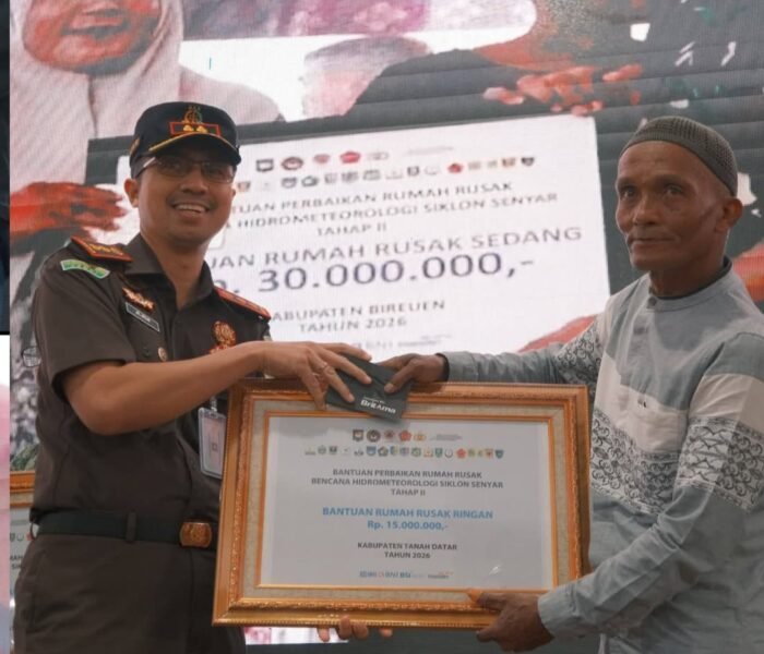 MEDIAINVESTIGASIMABES.CO.ID | BATUSANGKAR (SUMBAR) – Kabar baik menghampiri masyarakat Kabupaten Tanah Datar yang terdampak bencana hidrometeorologi. Kepala Badan Nasional Penanggulangan Bencana (BNPB) RI, Letjen TNI Suharyanto, secara resmi menyerahkan dana stimulan perbaikan rumah senilai Rp2,865 miliar kepada 126 Kepala Keluarga (KK) di Gedung Indojolito, Batusangkar pada Selasa 3 Maret 2026.